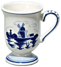 This beautiful footed coffee mug features a traditional windmill design and stands about 4.5" tall.