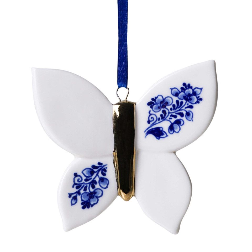 Delft Butterfly Ornament with Gold Accent